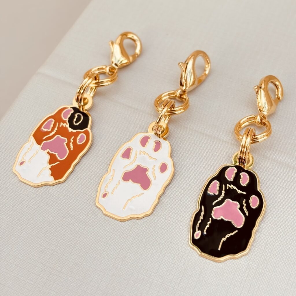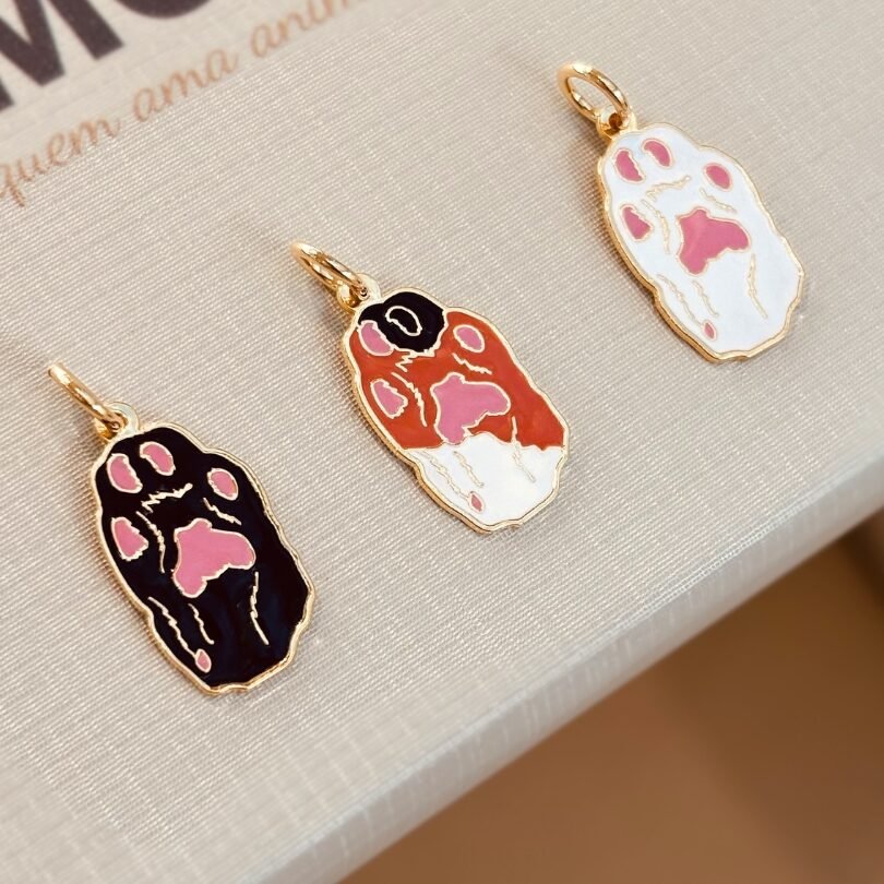 A coleção também traz 3 modelos de pata de gato, disponíveis em pingente(Folheados em ouro 18k e também em Prata 925) de pescoço e chaveiro: